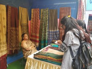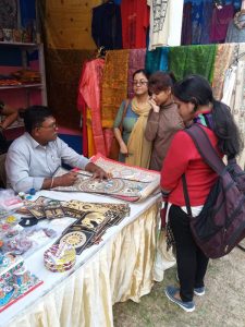 The students saw a vast repertoire of classic handicrafts, sarees, shawls etc from Gujarat, Mithila, Kutchh, Odisha, Hyderabad and many other parts of the country.