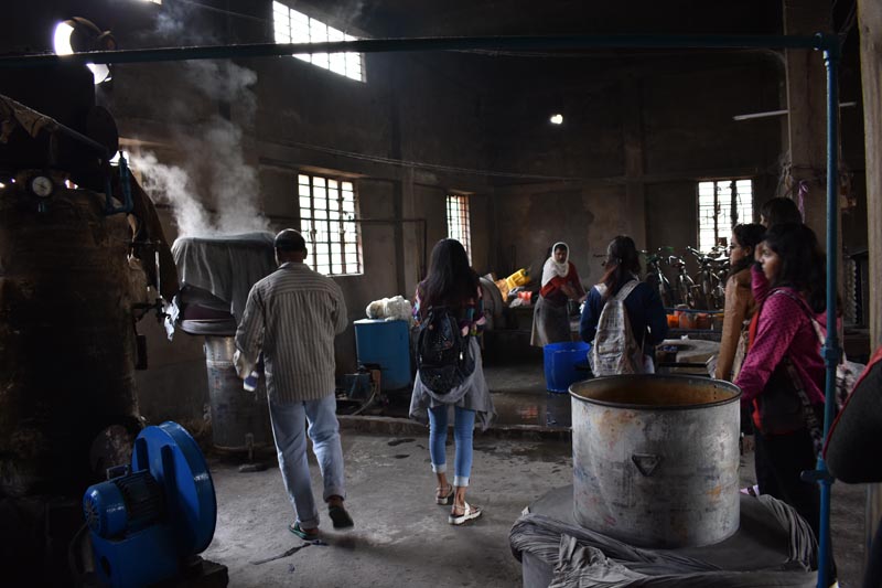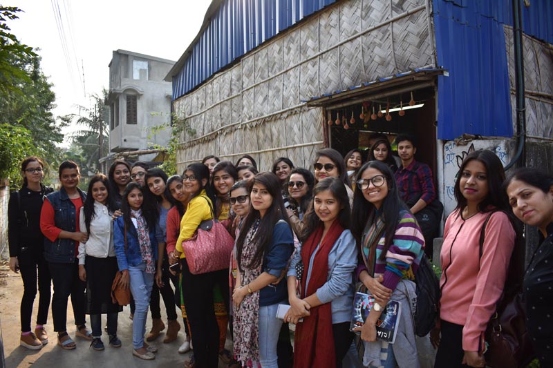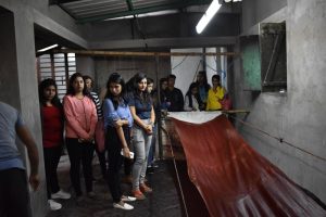 A one day industry visit program was organized for the One and Two year Fashion Design students to Shrirampur. A group of 27 students accompanied by three faulty members visited various Textile industries in Shrirampur. They saw the latest developed techniques in screen printing and how the screens are prepared through digital technology at Bengal Dyeing. At Third Eye they saw Block printing methods and Batik work being conducted at Batik Palace.