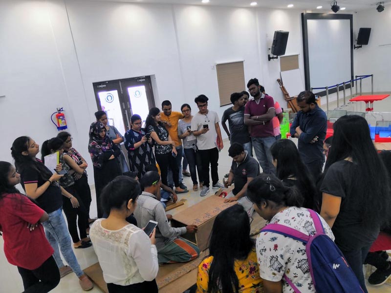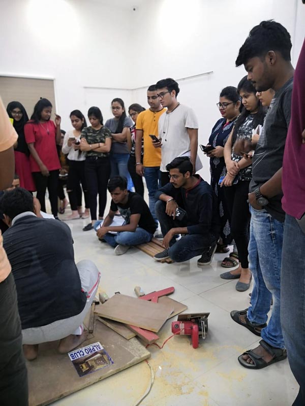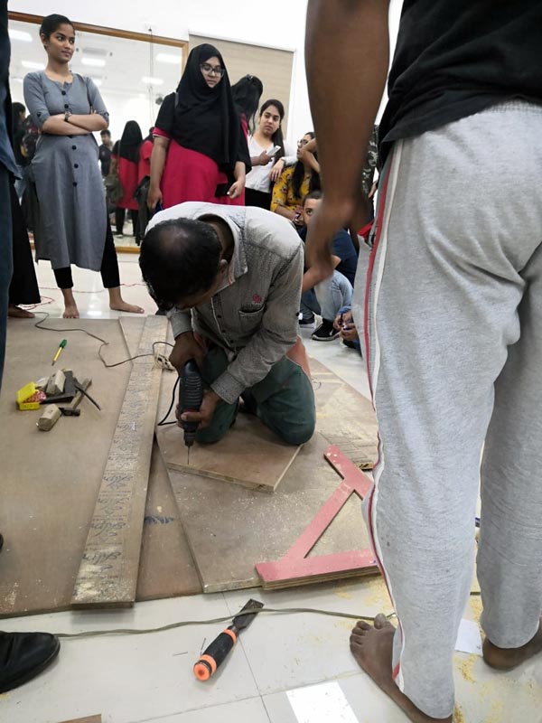 The workshop was organised to introduce a practical knowledge of carpentry work among students. A team of carpenters demonstrated to the students the various types of tools and equipment that are used by them. The workshop helped the students to enhance their practical knowledge about certain minor details in furniture making which is when taught in theory.