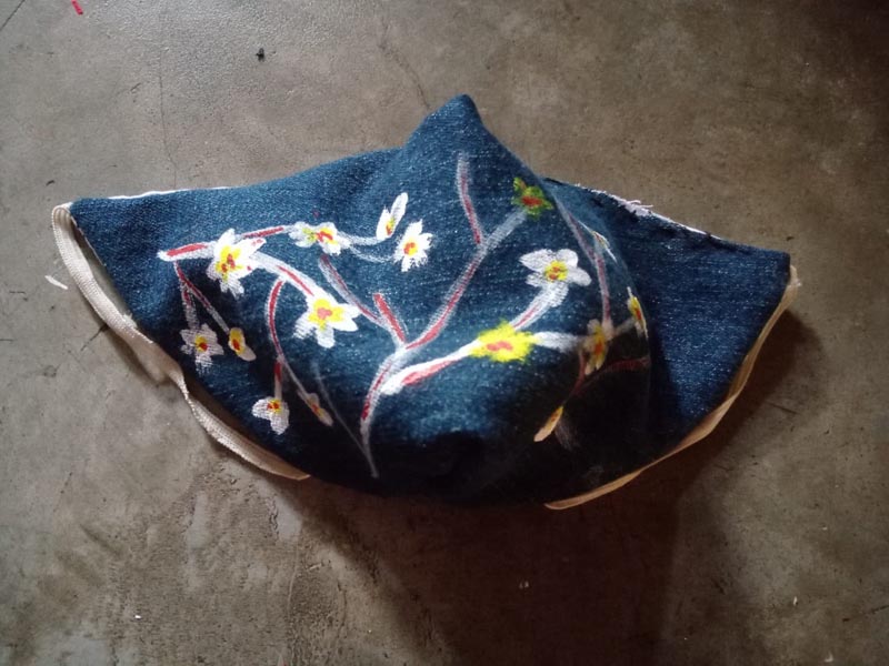 First are a series of facemasks designed by Fashion Design Advanced students under the guidance of Rajkiran Dass. These masks use material available at home.