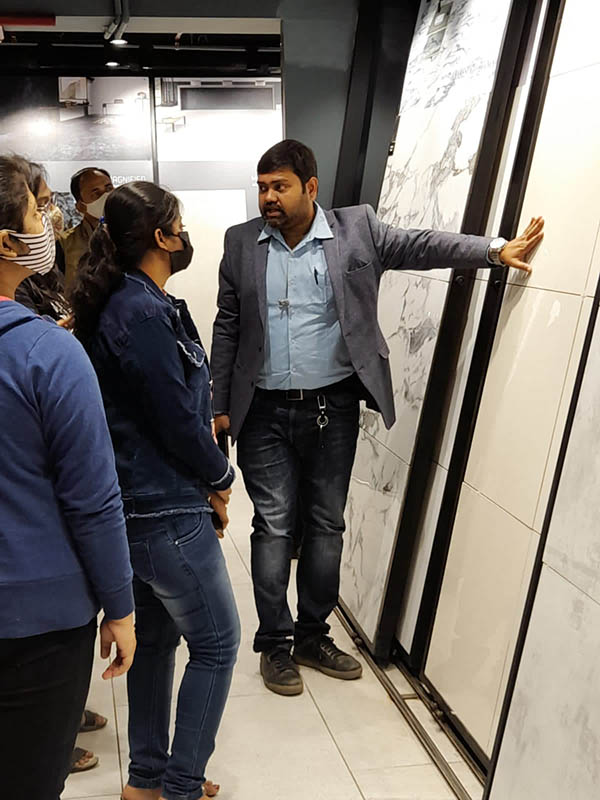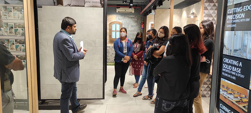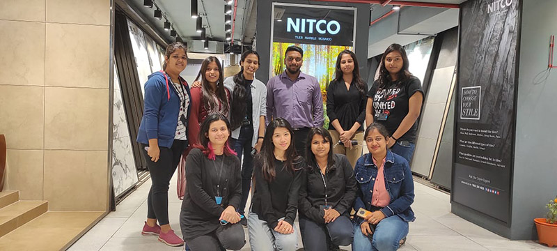 The visit for Interior Design Students to NITCO Studio (design center) was conducted on 25-2-2022. Total number of  students that participated in the visit was 9 of Interior Design 2 Year Sem 3 and Interior Design 1 Year Sem 1 batches respectively. They were accompanied by the subject faculty.