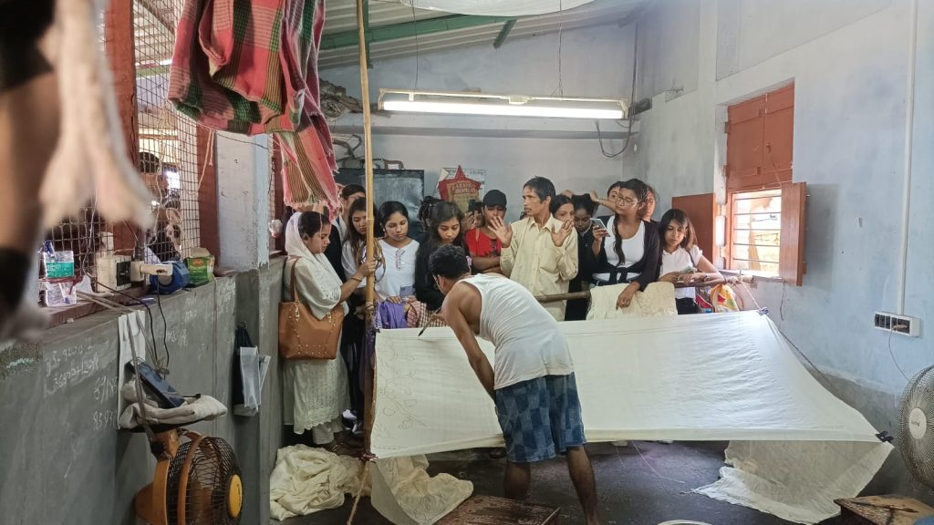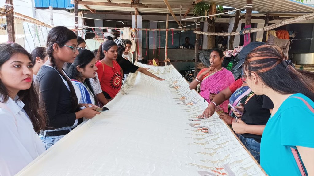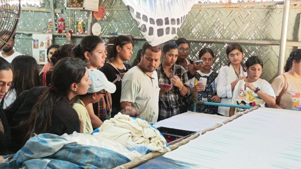 BDA organised an Industry Visit to Bengal Dyeing, Batik Palace, Printing unit of Arunava Bose and Sushil Das on 08 September 2022. The visit was conducted by Bhubon Chandra Manna and Arunava Bose in Serampore. Through this visit students learnt the hand printing, batik printing, block printing and also screen printing process. They also gathered knowledge about screen preparation.