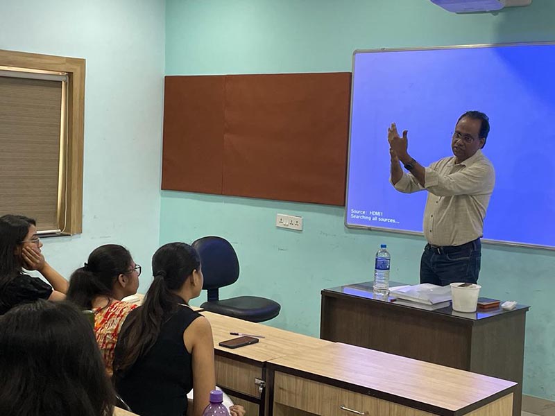 Mr. Anand Gupta is one of the very well known dealers of solid surface Corian brand Dupont in Kolkata. During his presentation on 13 April 23, he gave an introduction about the product, its manufacturing process, application and types. Pricing of the product was also discussed in depth. Students were shown related videos and images for better understanding. Doubts and queries were resolved at the end of the presentation.