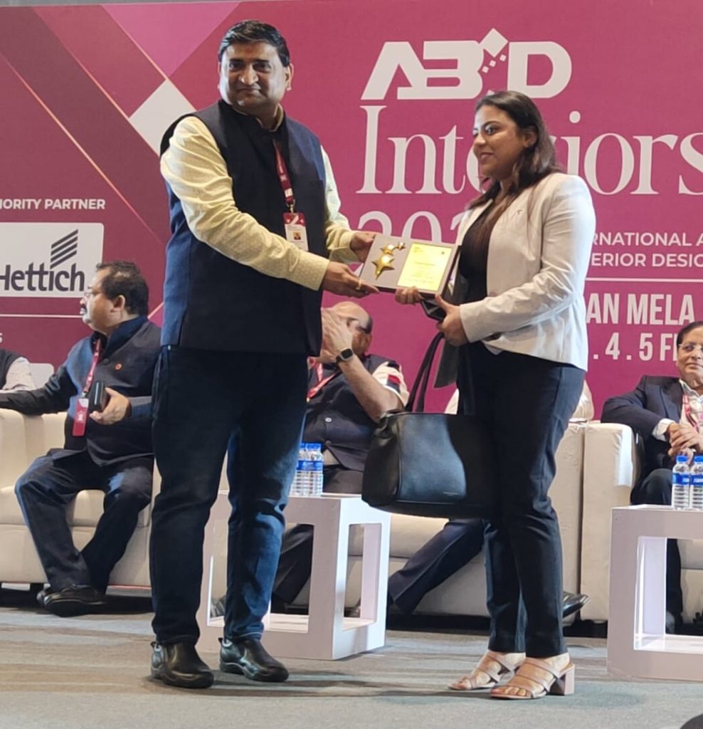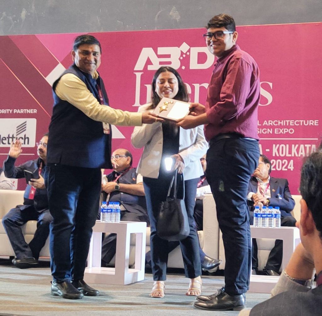 Two students for the year 2023-24 Priyanka Mahapatra (2021-23) and Dhiren Patel (2022-23) received the Best Students Award from The Bhawanipur Design Academy, at the ABID Interior event.