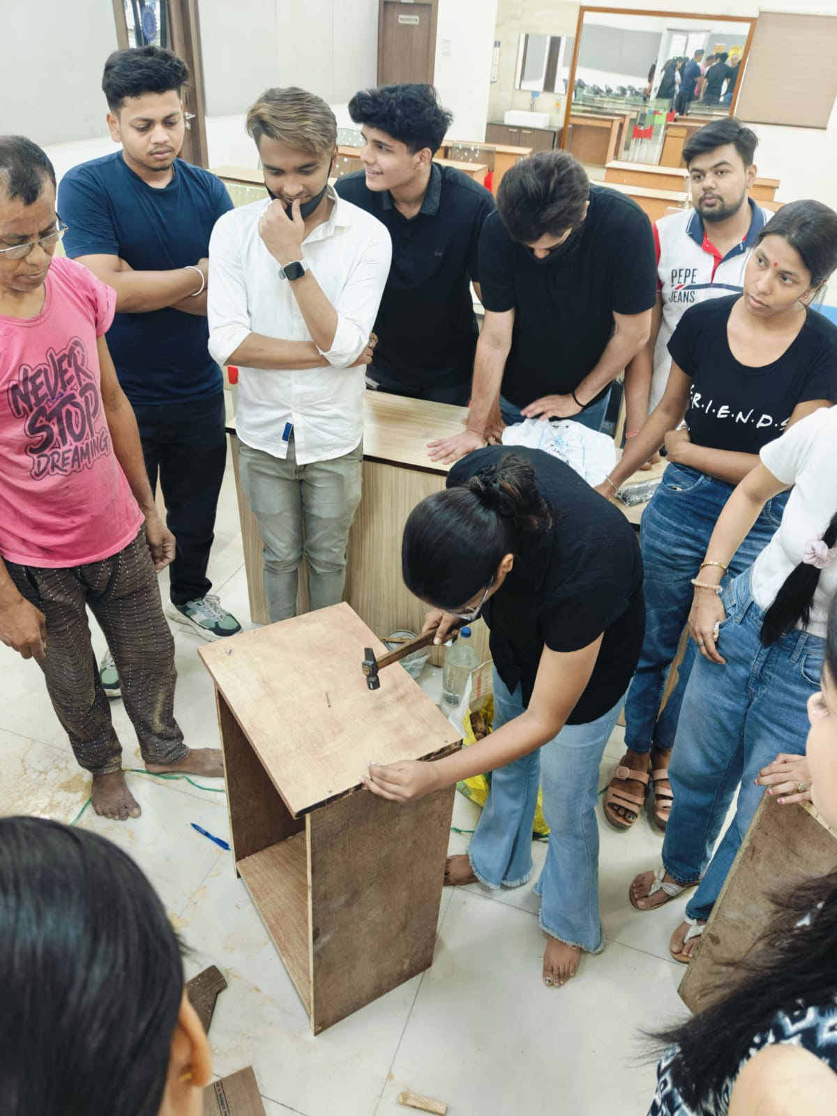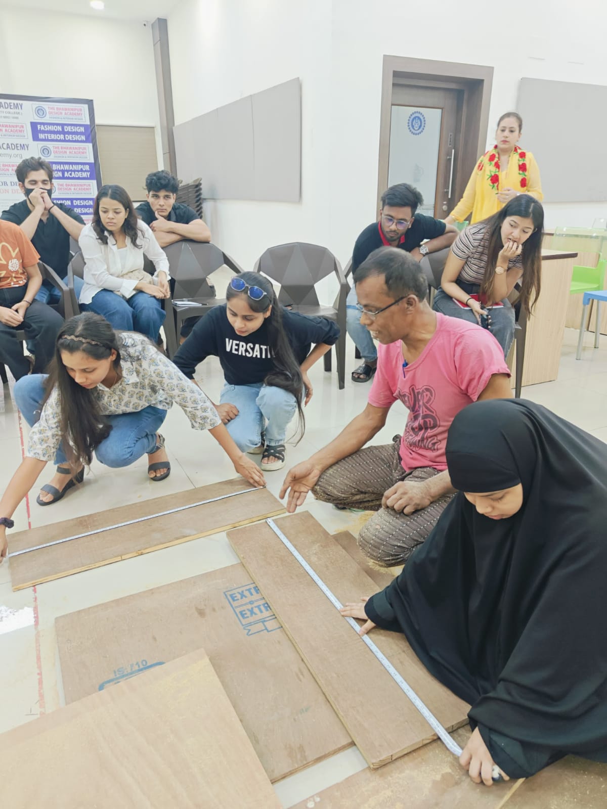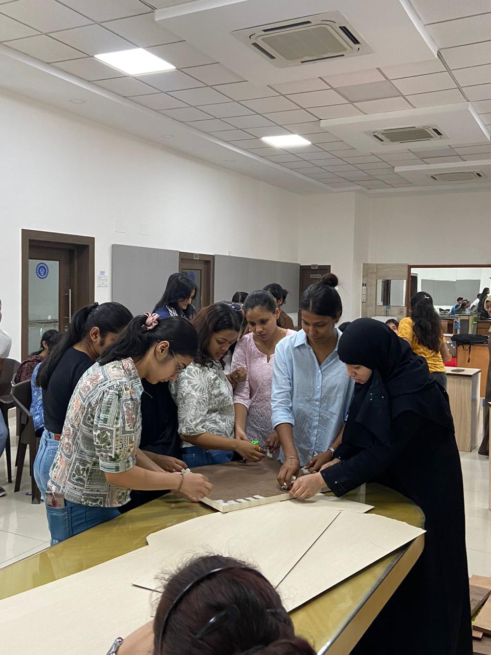 A Carpentry Workshop was organised for the Interior Design students on the 29th & 30th April ’24. 26 students and faculty members from Interior Design 2Yr (2022-24) sem IV & Interior Design 1Yr (2023-24) sem II attended the carpentry workshop arranged at the BDA premises. Through the workshop, the students learnt and experienced the different stages involved in the construction of a cabinet with a drawer. The students were also given the opportunity to construct the cabinet and paste laminates. The students enjoyed the hands-on experience.