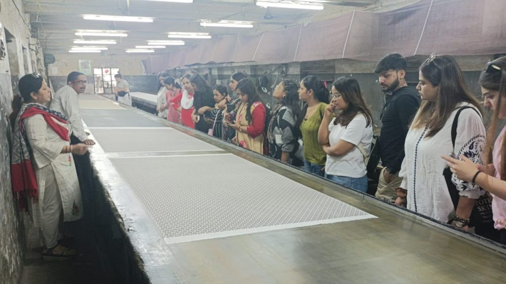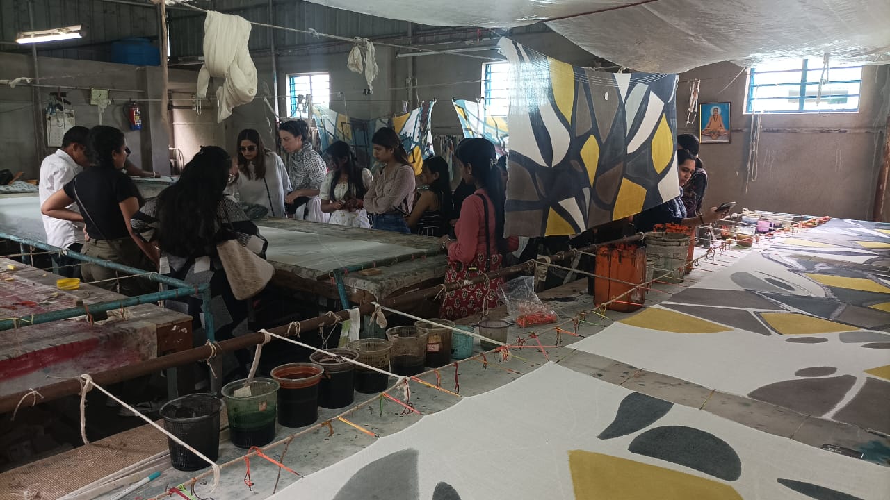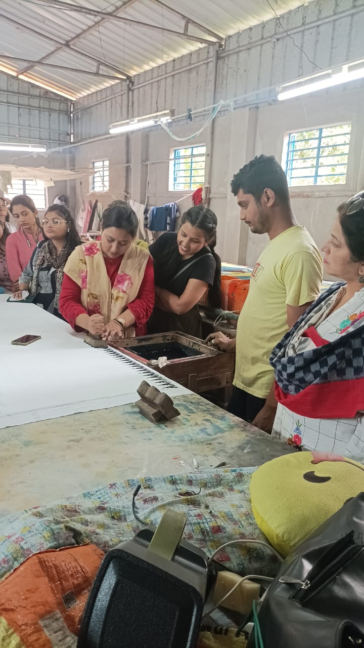 Fashion Design students visited the Bengal Dyeing, Batik Palace, printing unit of Arunava Bose and Jayshree Textile on the 8th April ’24. 24 students of Fashion Design 2yr sem IV (2022-24), Fashion Design 1 yr sem II (2023-24) and two faculty members had gone for the industry visit. Through this visit students learnt hand printing, batik printing, block printing and screen printing process. They also gathered knowledge about screen preparation. At Jayshree Textiles, students learnt about textile fiber to yarn to fabric, all process and method including linen and wool fabric.