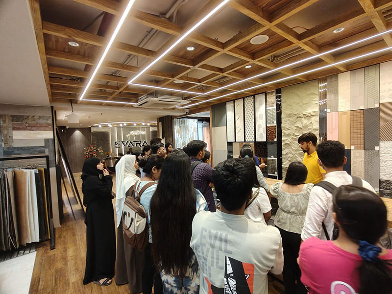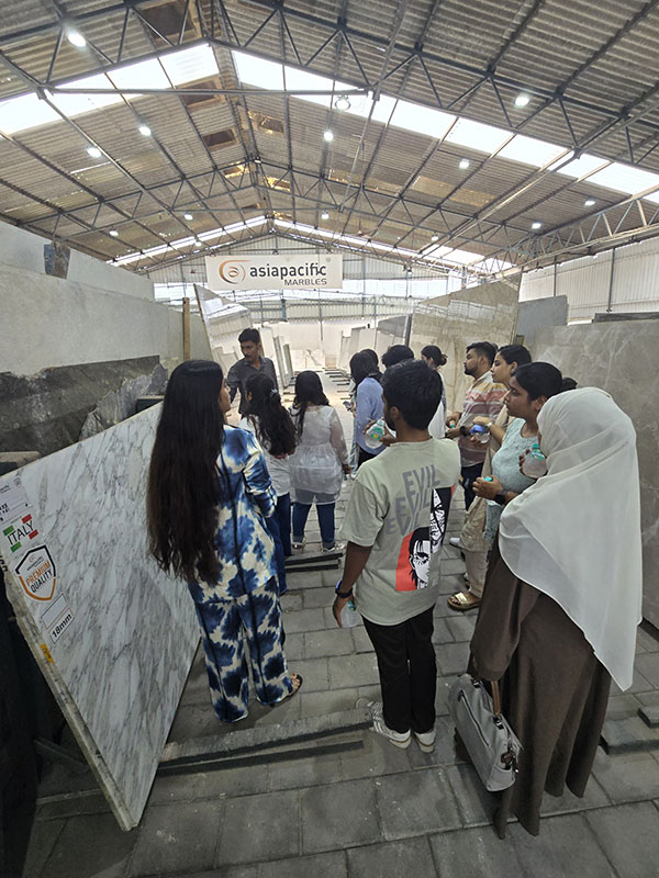A visit to Asia Pacific marble, Somany Tiles and Evara was organised on the 17th May ’24. 26 students and two faculty members from ID 2Yr (2022-24) sem IV & ID 1Yr (2023-24) sem II participated in the visit.