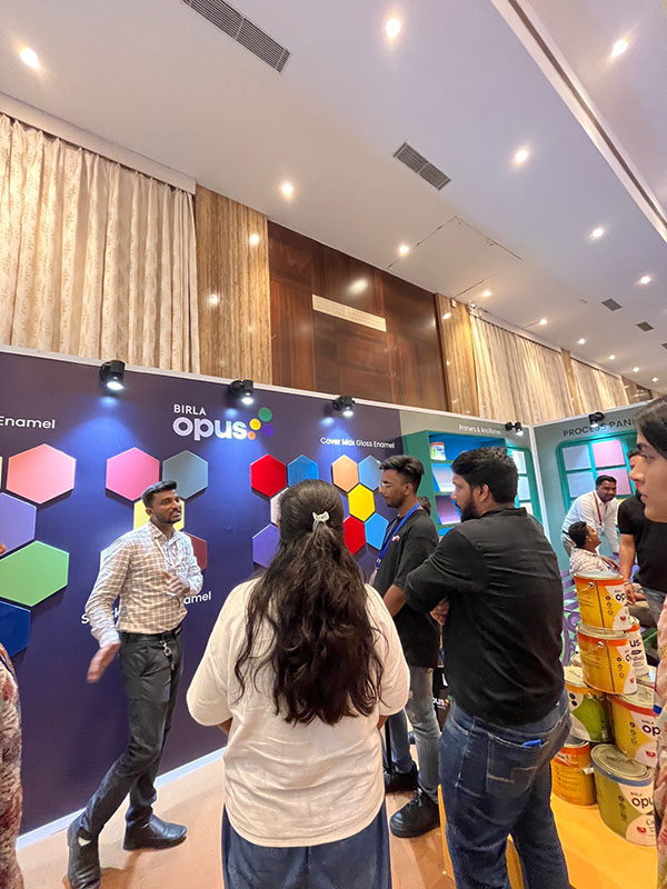 A visit to Birla Opus Paints Exhibition was organised on the 14th June ’24. 26 students and 2 faculty members from ID 2Yr (2022-24) sem IV & ID 1Yr (2023-24) sem II visited the exhibition. The visit helped the students to understand different types of paints available for different surfaces. Surface preparation and application process was also explained.