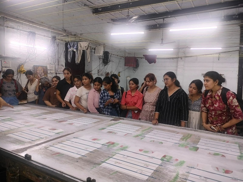 The Fashion Design students visited the Jaya Shree Textiles and Shree Ganesh on the 9th April ’26. 16 students of Fashion Design 2yr sem 4 (2024-26), went for an Industry Visit to Jaya Shree Textile at Rishra-Hooghly and Shree Ganesh at Cossipore, Kolkata. Students enriched knowledge on linen fiber, yarn to linen fabrics production with latest high tech machines. They learned the process of how raw Merino wool is used to make worsted yarn ready for knitting or weaving. At Shree Ganesh, students got to see digital screen printing, silk screen printing process and digital embroidery on kid’s wear.